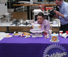 Afterwards, we watched a cake decorating demo with Beth Somers from Wilton. Frequent readers of BoB know that I am not very confident in my cake decorating skills. Beth made it look so easy, that she had even me believing I could make beautifully decorated cakes.